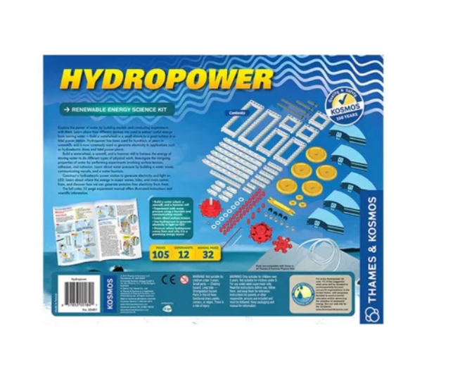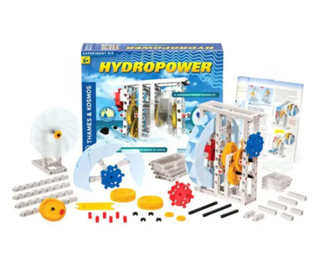 • The Thames & Cosmic Hydropower Experiment Kit is the perfect way to introduce your kids to the concept of hydropower. It helps children learn how to use water as a source of alternative energy sources. While allowing kids to build different models, this educational kit also teaches them the concepts of surface tension, adhesion and cohesion.