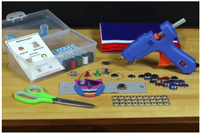 • Designed for individual or small group use, the Sewing Circuits Standard Kit contains enough materials for at least two projects. This Sewing Circuits Kit makes it very easy to create wearable electronics and flexible circuits. Using conductive thread and our special Crazy Circuits parts, you can easily sew circuits onto any fabric.