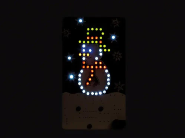 The Snowman Welding Kit has 69 multi-color LEDs. No need to remove the battery when using an external power supply, it runs on 12V and comes with an on/off switch.