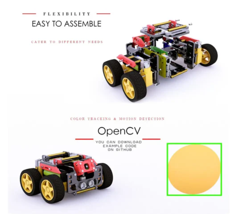 Features include object recognition, tracking, and motion detection - based on OpenCV, it can track objects of specific shapes or colors; It also has line tracking function - based on infrared reflection, so it can walk along the route you set. It has real-time video transmission capability, so it can transmit real-time images captured by Raspberry Pi cameras to remote computers. It can be remotely controlled through an APP, so you can remotely control the robot through buttons on the keyboard or virtual buttons on the GUI. It is equipped with 6x WS8212 serial RGB LEDs, which can be controlled with just one GPIO pin, changing various colors and indicating the working status of the robot. It also includes a printed manual and a 64 page PDF manual with illustrations to teach you step-by-step assembly of the Raspberry Pi robot. h