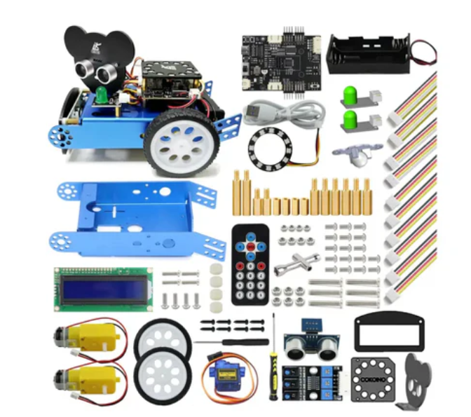 • Users can explore various features, including smartphone controlled robots compatible with Android devices and infrared remote-controlled robots. This kit is equipped with features such as obstacle avoidance, line tracking, LCD display screen, and light show. It comes with detailed tutorials, including step-by-step instructions, circuit schematics, and source code, to guide users through the assembly and programming process.