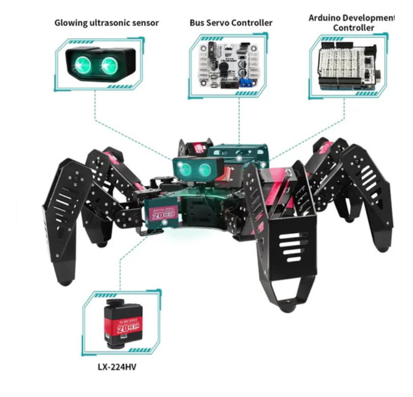 The Hiwonder Spiderbot Hexapod Arduino programming robot is a programmable robot with 18 degrees of freedom (DOF). By using the provided Android/iOS applications, it is easy to program them to perform tasks such as walking, climbing, and dancing.