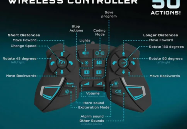 Thames & Kosmos Code+Control: Robo Dozr provides powerful robot bulldozers and stylish handheld wireless controllers. Then use the controller to command your robot to move in all directions, play sound, and light up the cab ceiling light.