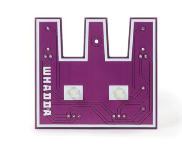 • The white LEDs resembling Whaddy's eyes will blink one by one. You can also solder pins so that you can attach Whaddy to your clothing, bag, etc.