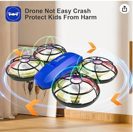 Perfect fan blade protection: The drone adds a top protective cover to provide complete protection. It not only prevents the drone from being damaged, but also prevents children from touching the fan blades from above. Regular drones only provide protection, but the drone above does not have protection.