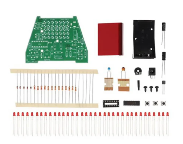 • The Scrolling Message Soldering Kit is a graphic display module with 35 LEDs. The display can show up to 16 characters with adjustable scrolling speed.