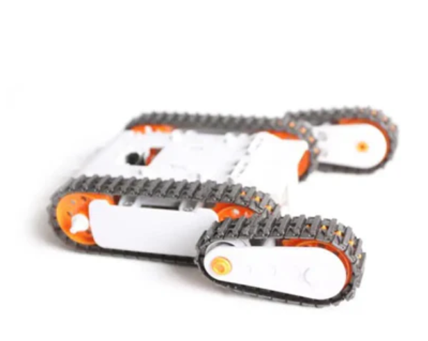 The arm crawling robot kit is equipped with four rotating tracks: one on each side of the body and one on each of the other two arms. The arm itself can also rotate, grabbing onto slopes or raised surfaces to pull the model, allowing it to climb and descend up to 45 millimeters.