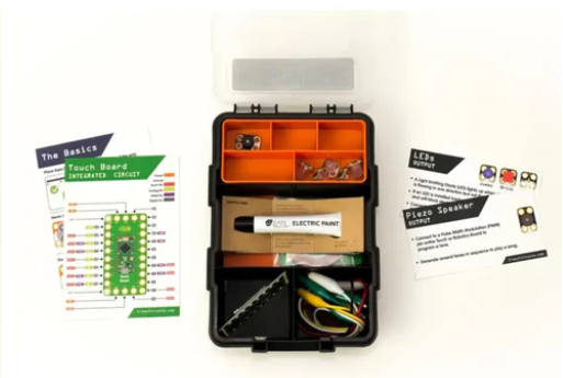 • Crazy Circuits Kit with Bare Conductive Paint combines the power of Arduino with the conductive paint from Crazy Circuits. The included Invent Board enables users to turn the included conductive paint into interactive programming projects. Create your own programs or use one of the many online guides or tutorials.