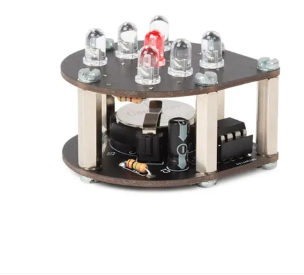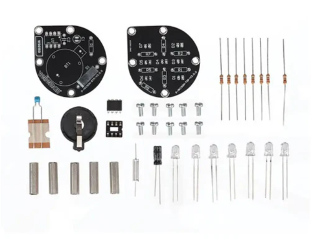 • The electronic dice soldering kit comes with two black PCBs that are specially molded to resemble a rolling dice. When the rolling ball switch detects motion, it triggers and the red LED starts to display random numbers.