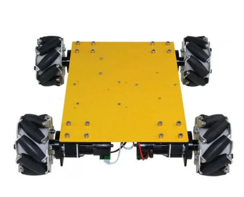The 4WD Arduino compatible basic Mecanum robot is a four-wheel drive mobile kit designed for enthusiasts and students to understand the functionality of Mecanum wheels. It includes four 12VDC motors with encoders. Its chassis is made of aluminum alloy and has pre drilled holes for microcontrollers. Size: 250 millimeters from the center of the wheel to the center of the wheel, with a total length of 350 millimeters; The total width is 343.4 millimeters.