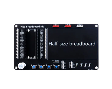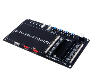 • The 52Pi Breakout Kit Half-Size Breadboard for Raspberry Pi Pico / Pico W is an experimentation platform designed to enhance the user experience when using the Raspberry Pi Pico W. The kit includes a variety of built-in features such as LED lights, buttons, and buzzers, all integrated into a half-size breadboard. It is tailored to facilitate the construction of DIY circuits, especially for those who are new to electronics and looking to work on their first project.