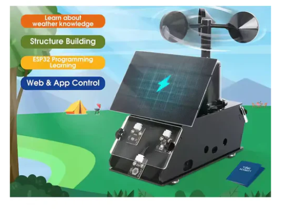 • This starter kit is an excellent educational tool that provides hands-on STEM learning opportunities. It enables students to master basic skills in weather monitoring, ESP32 programming, sensor integration, solar energy, and problem solving. By building a fully functional weather station, students can explore solar energy and sustainability and develop practical skills in system design, assembly, and troubleshooting.