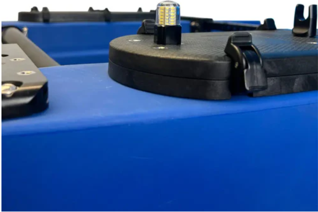 • The BlueBoat has a long-range Wi-Fi radio that uses a standard antenna to connect to a BaseStation box up to 1 km away. The BaseStation acts as a Wi-Fi access point that allows you to connect and operate your boat. It also has a built-in battery and a USB-C port for charging and wired connection.