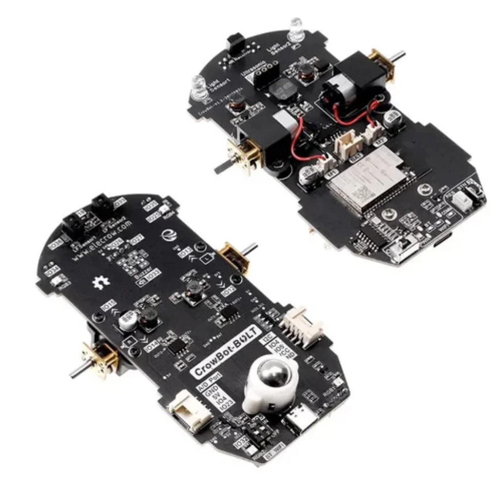 CrowBot BOLT - Open Source Programmable Smart Robot Car with Joystick is an innovative open source programmable smart car with ESP32 chip. Equipped with various sensors such as optical sensors, ultrasonic sensors, line tracking sensors, and Wifi and Bluetooth functions, it is a multi-functional tool compatible with various programming environments such as Letscode, Micropython, Arduino, etc.