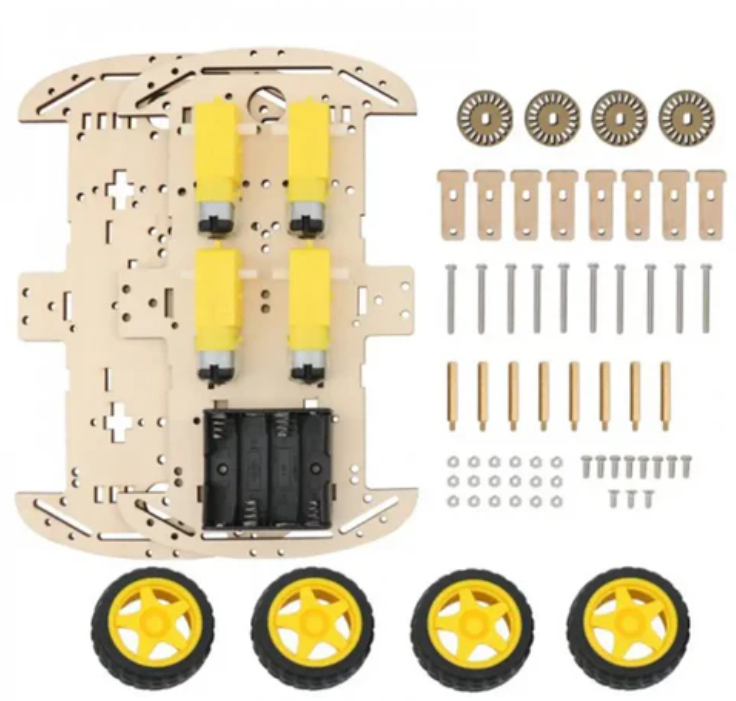 Dagu 4WD intelligent robot car chassis kit (Arduino version) is a four-wheel robot kit. It provides four DC gear motors and a 20 wire tachometer encoder. h