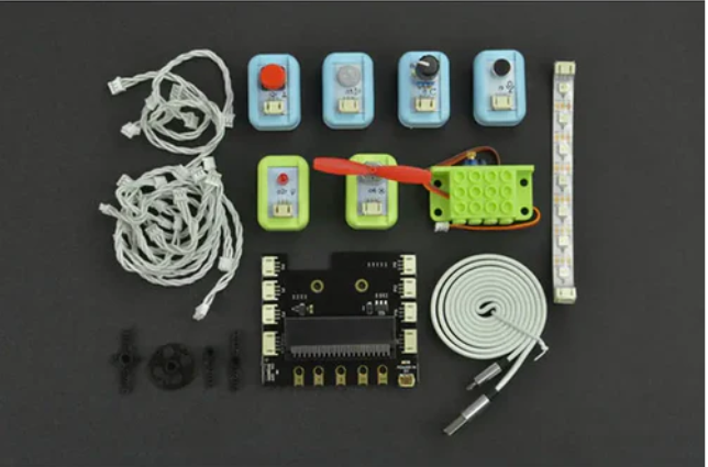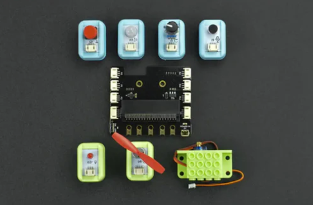 DFRobot Boson micro:bit Starter Kit contains eight modules to choose from, covering the most common digital and analog sensors and actuators, supporting sound, light and motion interaction. The module communicates with micro:bit via a 3-pin interface and is fully compatible with Microsoft MakeCode JavaScript online editor and Python editor.