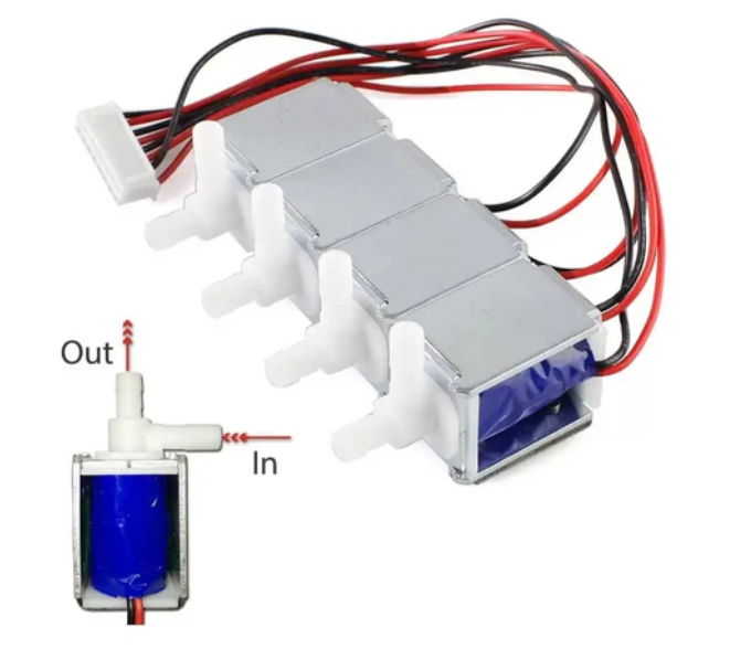 • The kit comes with a pump, a capacitive soil moisture sensor, a water switch for up to four plants, and pipes for distributing water. The soil moisture sensor is made of corrosion-resistant materials and has a long lifespan. The kit allows you to easily build and customize a smart plant monitoring system. The system uses a soil moisture sensor to measure soil moisture levels and sends commands to switches to water specific plants based on this data. The kit can be powered by a DC power supply, eliminating the need for messy jumper wires and breadboards. The kit consists of various parts including the Smart Pump Shield v2.1, a capacitive humidity sensor, a water supply tube, adapters, valves, a water pump, and cables.
