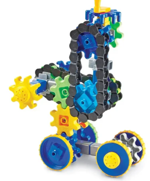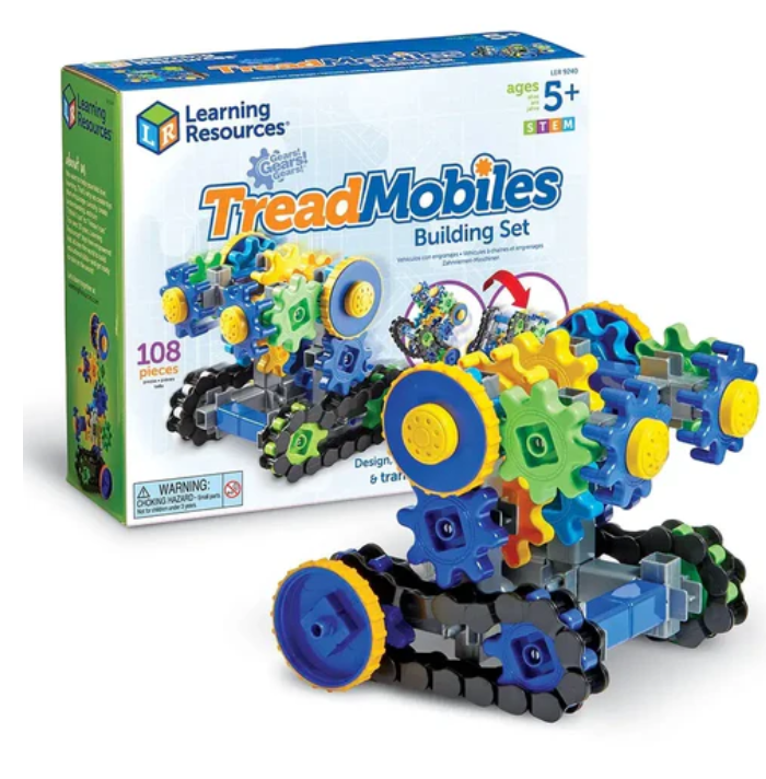 Learning Resources Gears! Gears! Gears! The TreadMobile building kit offers 108 STEM building kits. Design your own twisted and rotated works. This kit is equipped with colored moving gears and adds extra fun through a connectable rubber pedal.