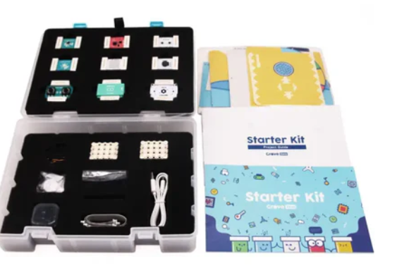 • Grove Zero Starter Kit V2.0 is designed for kids who are new to graphical programming and robotics. This innovative kit includes 9 color-coded plug-and-play programmable Grove Zero modules that can be connected in a variety of ways to bring your projects to life. The kit includes a main board, battery module, light sensor, sound sensor, two-button module, buzzer, RGB LED, LED matrix, and servos.
