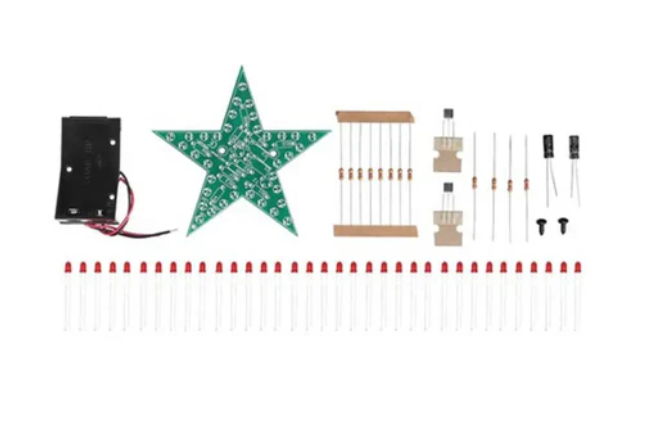 • The Flashing Red LED Star Soldering Kit has 35 LEDs in total. It is a great gadget for Christmas decoration etc. 9V power supply is available. The current consumption is 40mA (static mode).