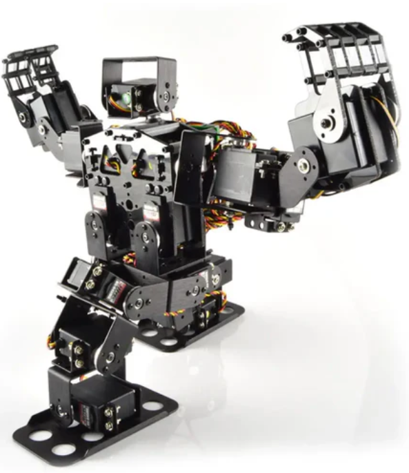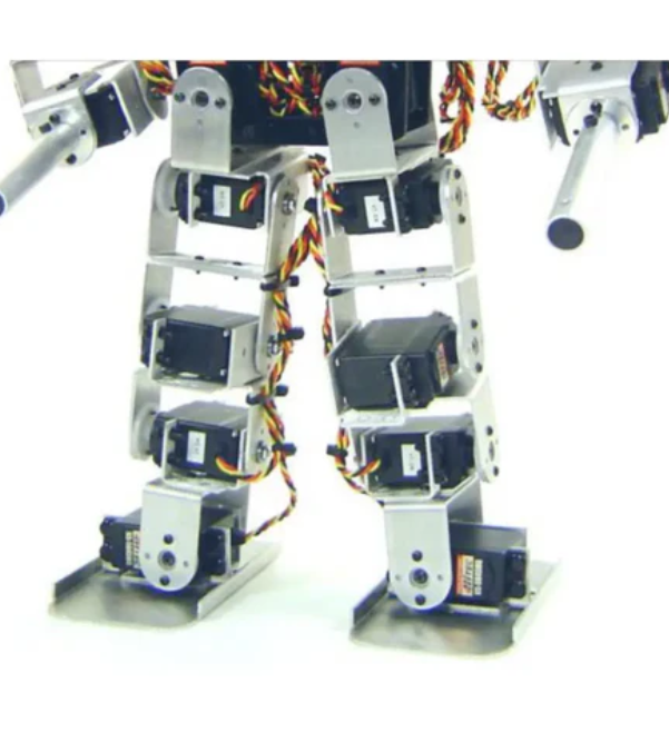 Lynxmotion Pete humanoid robot development platform (without software) is a 22 DoF R/C servo bipedal walker with a default configuration of gripper. This allows Pete to walk forward or backward, turning left or right in place at a variable speed. The leg design is similar to that of humans. Pete has five degrees of freedom for each leg, five degrees of freedom for each arm, and two degrees of freedom for the head. It is worth noting that Pete is currently a research platform that requires users to create their own walking algorithms and complete electronic devices to achieve remote control or autonomous functions.