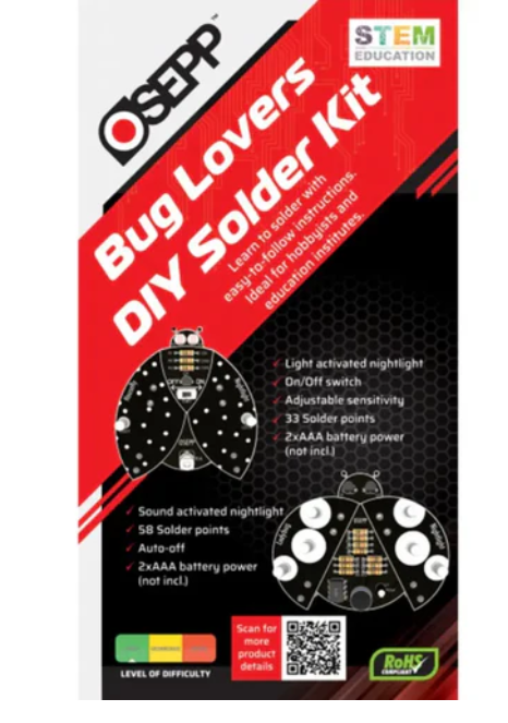 • The Bug Lovers DIY Soldering Kit comes with two different Bug Project Boards. Easy-to-follow instructions make soldering simple. Great for hobbyists and educational institutions. Comes with easy-to-follow illustrated instructions and a "How to Solder and Desolder" guide.