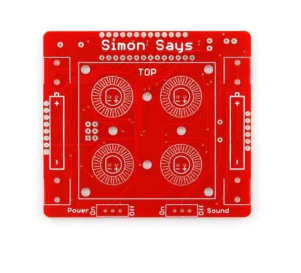 • Simon Says - A few modifications made to the through-hole soldering kit make it easier for beginners to build. All components are through-hole, making this kit ideal for starting to learn soldering. When you build this kit, you will have the opportunity to solder a 28-pin microprocessor, LEDs, battery clips, and more.