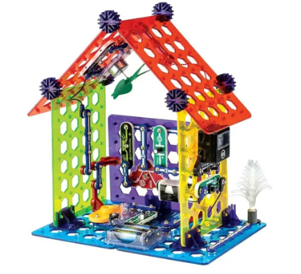 • Snap Circuits MyHome lets you build a house or city tower with real, working 3D circuits, just like the ones you use every day. It comes with seven colorful base grids that allow you to build your own structures and learn how electricity travels and powers your home.