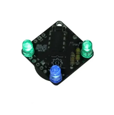 The Solarbotics FireFly Soldering Kit runs three LEDs with push-button selected light blinking sequences, with smooth transitions. Use it to teach soldering, host late-night blinking parties, or hack your own creations.