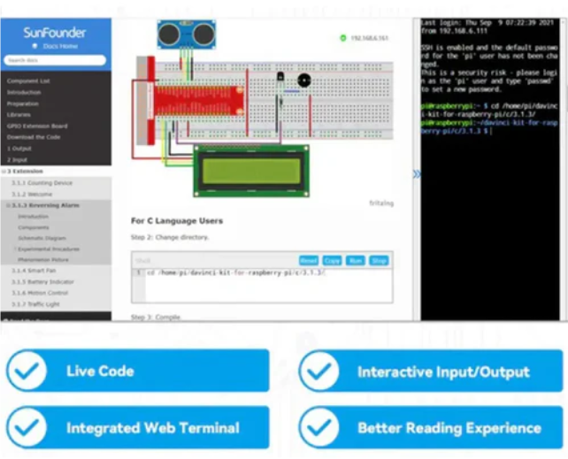 The SunFounder Da Vinci Raspberry Pi Starter Kit contains 69 basic and advanced projects and is a basic kit for Raspberry Pi beginners. Contains 26 commonly used input/output components and modules, as well as basic electronic devices such as resistors and capacitors, providing strong support for learning programming.