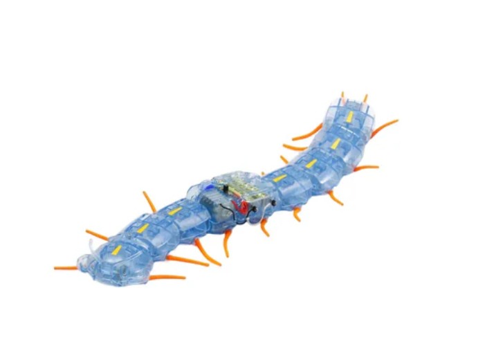 The speed of the centipede robot is estimated to be 1 meter every 15 seconds, and its clever design can automatically bypass insurmountable obstacles. The body parts are made of eye-catching transparent blue plastic, and the number of parts used can be customized according to preferences.