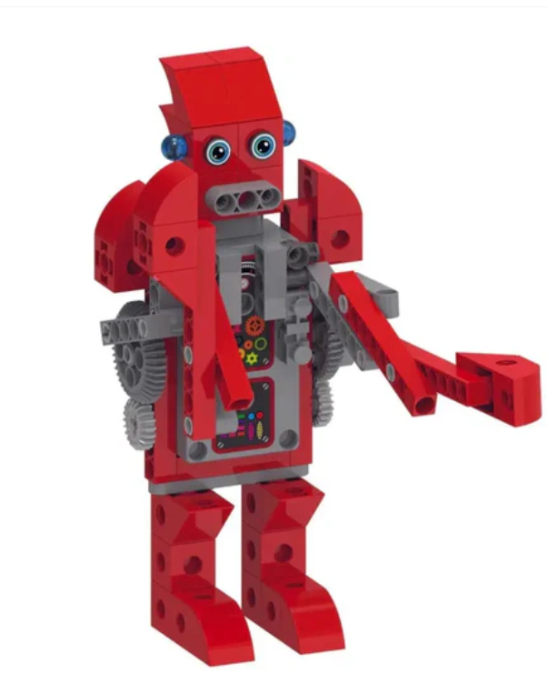 Each robot's arms or legs move in different ways, creating interesting walking and movement behaviors, while also teaching children how simple mechanical systems work. Large cube plastic building blocks allow small hands to easily assemble models together.