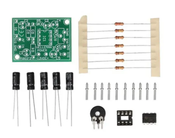 • Velleman Universal Mono Preamplifier Soldering Kit is used for audio modules whose input signal is too weak, such as microphone preamplifiers and level compensation.