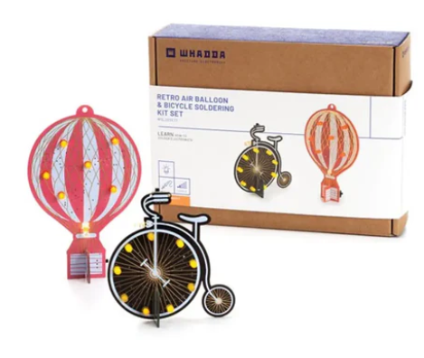 • The Whadda Vintage Balloon and Bicycle Soldering Kit (WSL22SET1) allows people to travel back in time and learn about electronics with its vintage design. These soldering kits are great for beginners and advanced collectors, and the kits are available in two unique designs.