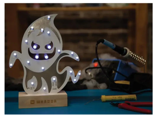 • The Whadda Ghastly Ghost XL Soldering Kit (WSXL110) is ideal for beginners and advanced makers. Before this ghost can start scaring your friends, you'll need to solder all the components to the unique silver-plated circuit board. These components include a colorful RGB LED with a special diffusion effect.