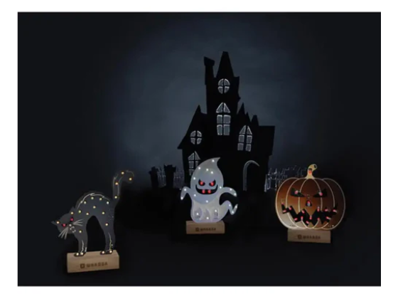 • Once the soldering job is complete, the LED will display 5 different lighting effects, which you can select using the onboard button. The onboard ATtiny chip is pre-programmed with these animations, so the kit will work as long as you power it with the included adapter. Place the ghost on the mantel or behind a window to scare everyone who passes by.