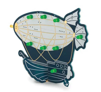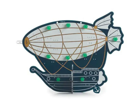 • Features a retro-designed PCB shaped like a vintage zeppelin