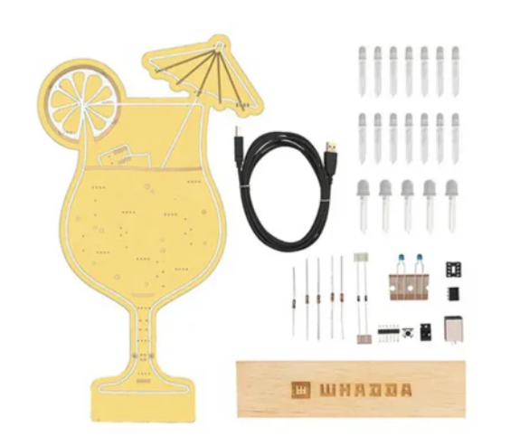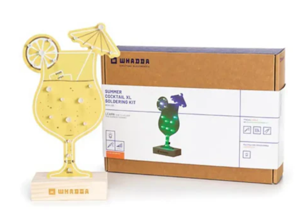 • The Whadda Summer Cocktail XL Soldering Kit (WSXL105) features decorative RGB LEDs with special diffusion effects. Once soldered, the LEDs will provide five different light effects. The built-in ATtiny chip is pre-programmed with some basic LED effects, so you only need to power it with the included adapter and the kit will work.