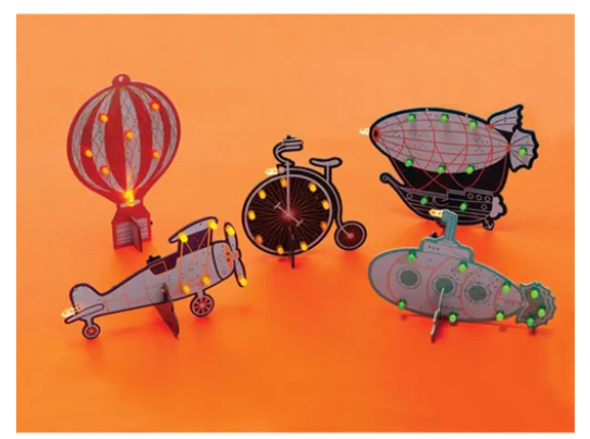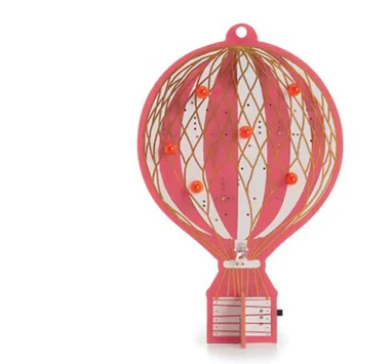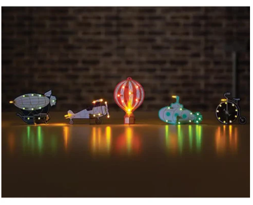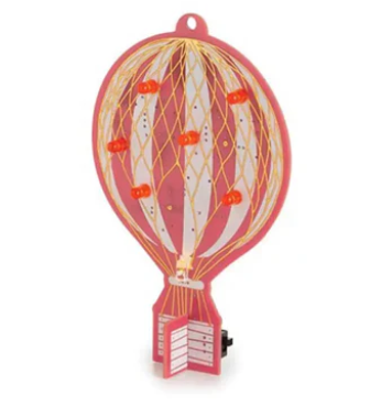 • When you are finished, the LEDs on the kit will light up and you will have a nifty little gadget. This particular kit is in the shape of a Jules Verne-style hot air balloon and can be hung from the small mounting holes on the top, or it can stand on its own.