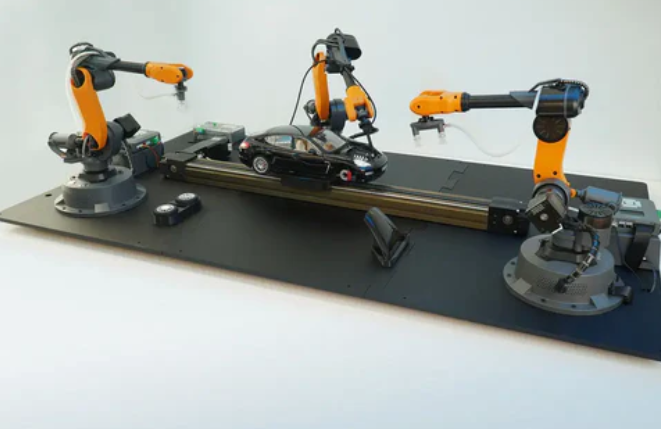 It combines a conveyor system, accompanying end effectors, and measuring equipment to meet the assembly requirements of automotive components. This product is designed to be compatible with Mirobot and can be programmed using C++with Arduino. It also comes with a comprehensive textbook, which can serve as a valuable resource for educators and learners.