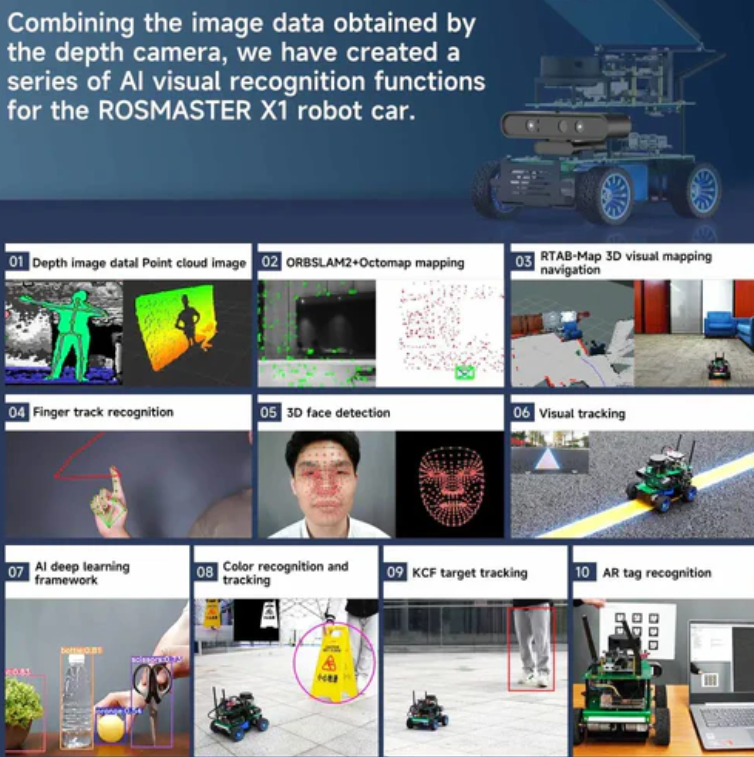 There are various control methods for the Rosmaster X1 robot, including first person perspective control, advanced targeted map navigation app, PC control, Jupyter Lab programming control, and ROS system control. Learning to control your robot car step by step is a very rewarding experience.
