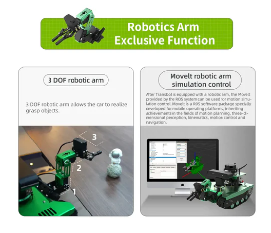 Yahboom Transbot ROS AI Robot for Jetson NANO 4GB, Depth Camera, Radar, Robot Arm, and 7-inch Touchscreen (without Jetson NANO SUB board)